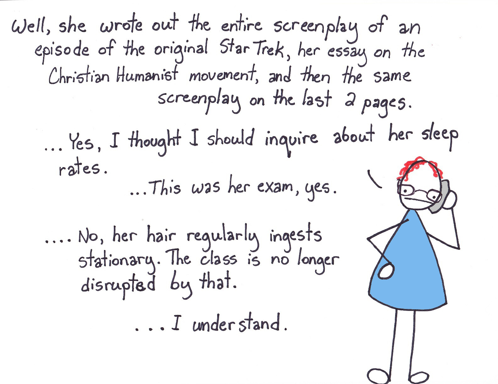Posted on December 27, 2010 by Sharpie Sandbox Falling asleep studying for finals can yield some hilarious phone calls. Share this: Click to share on Facebook (Opens in new window) Facebook Click to share on X (Opens in new window) X Like Loading... Related Author: Sharpie Sandbox View All Posts